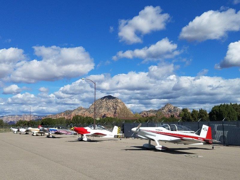 Well...we had 9-10 T-18's this year down from out usual 10-15 . Mostly due to WX delays/cancellations and the Presidential TFR's around El Centro and Vegas . WX at Sedona was better than average with calmer winds . Evening chow was as good as always with lots of lies spread during the nightly feast . So what did we learn from this years Fly In ? Review and up grade your pack up kit or fly away kit . Make sure you have a complete socket set (please no Cresent wrenches !) A good set of wrenches is also a good idea . How about a spare tire tube ? We had one flat and no where to get a spare tube , but one of our members carries one with him in his fly away kit ! Takes up very little space . If you care to see where I carry mine I'll be happy to show ya . All in all it was a great Fly In and everyone made it home safely !