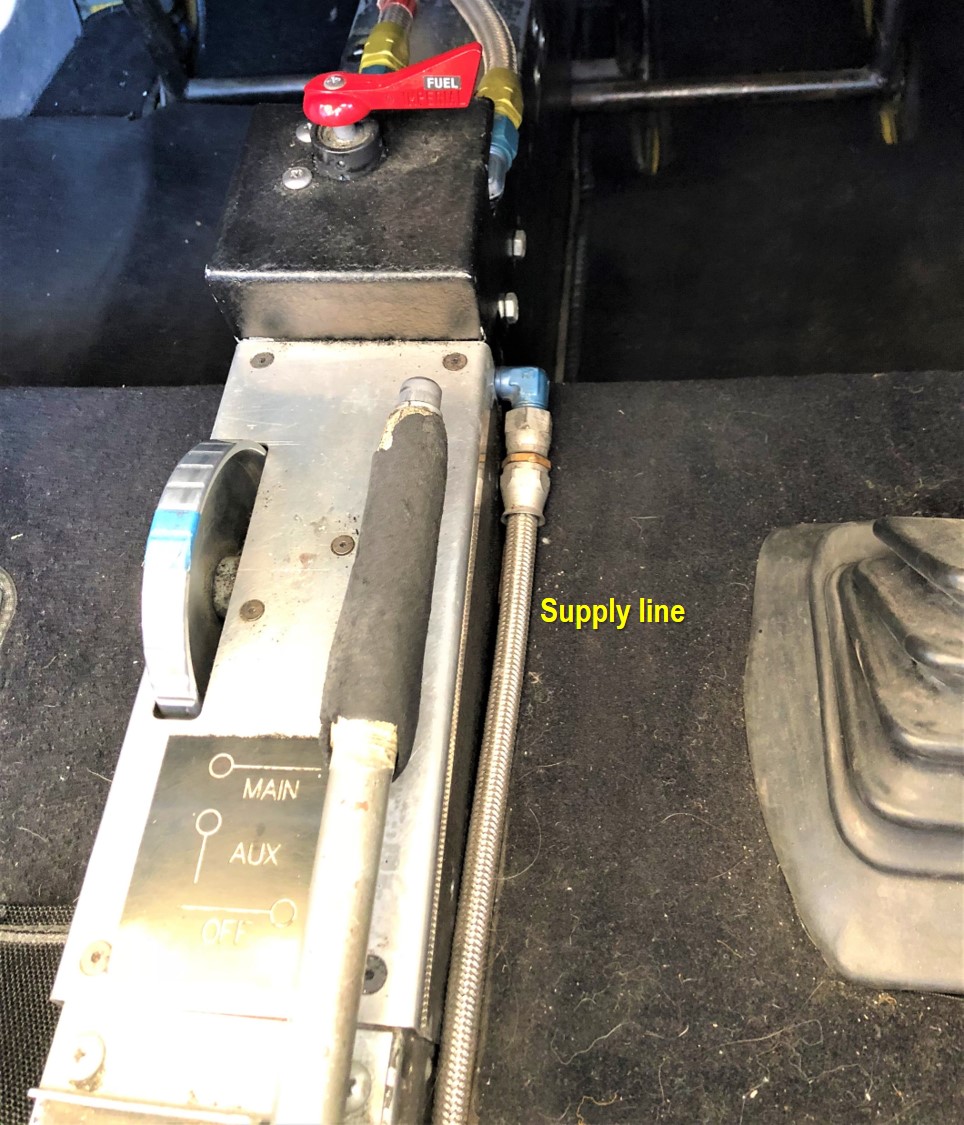 My fix would be to move the outlet to the rear and install a gascolator on the floor to trap any contamination. That takes care of 2 problems: 1) sump checks and 2) gives a low point in the system that the hoses can drain to. Essentially, I would duplicate what I have seen on Cessna and Piper aircraft and follow the "rules" for fuel system design published by people like Tony Bingelis.