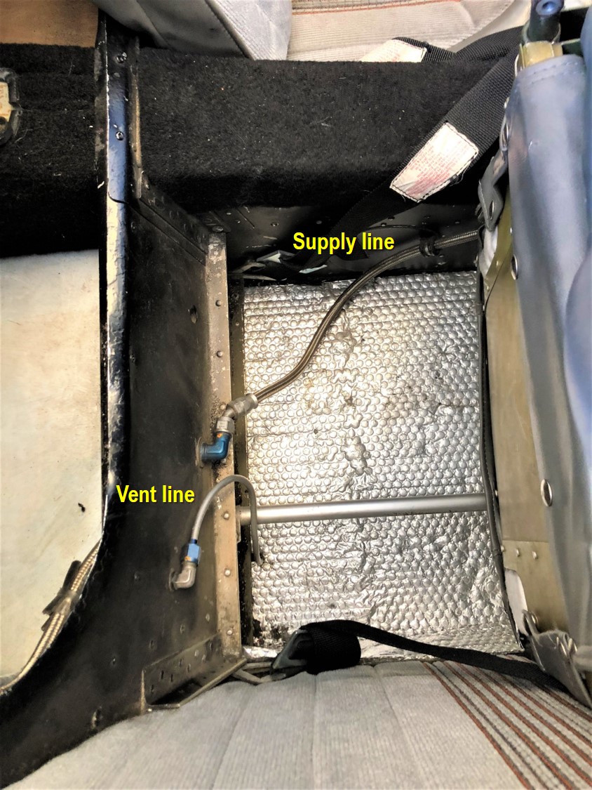 You're right of course, Jeff. Can anyone confirm that the T-18 usually flies in an attitude that has the turtle deck sloping slightly nose down? In 28 years of flying mine, I don't think I ever had a reason to check or think about that. Anyway, this aux. tank's feed is going to be joining the fuel line to the engine upstream of the existing gascolator, which should trap any water, but that doesn't address your concern about getting a valid sample directly from that tank before flight.