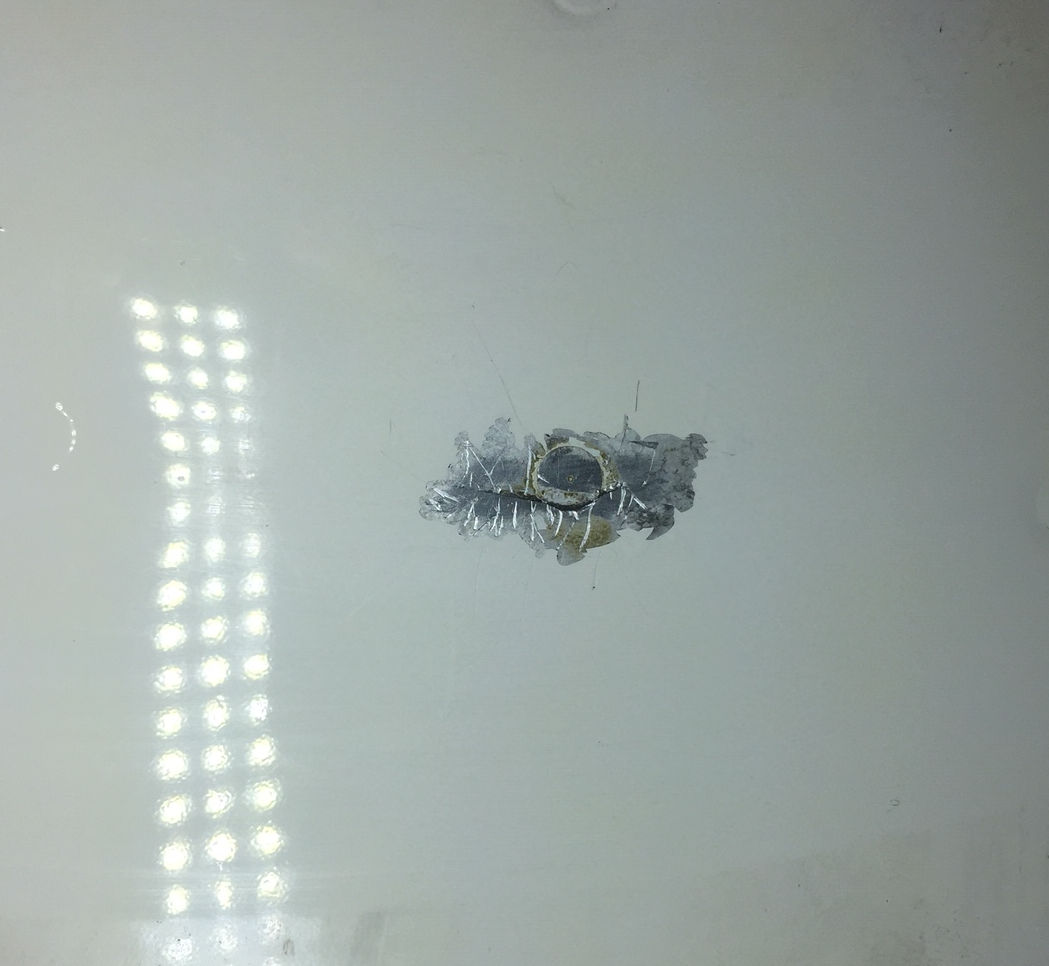 on bottom of LH stab, 2nd rib, there is a crack in the skin. It starts at the middle rivet (through the tube spar) . See photos.