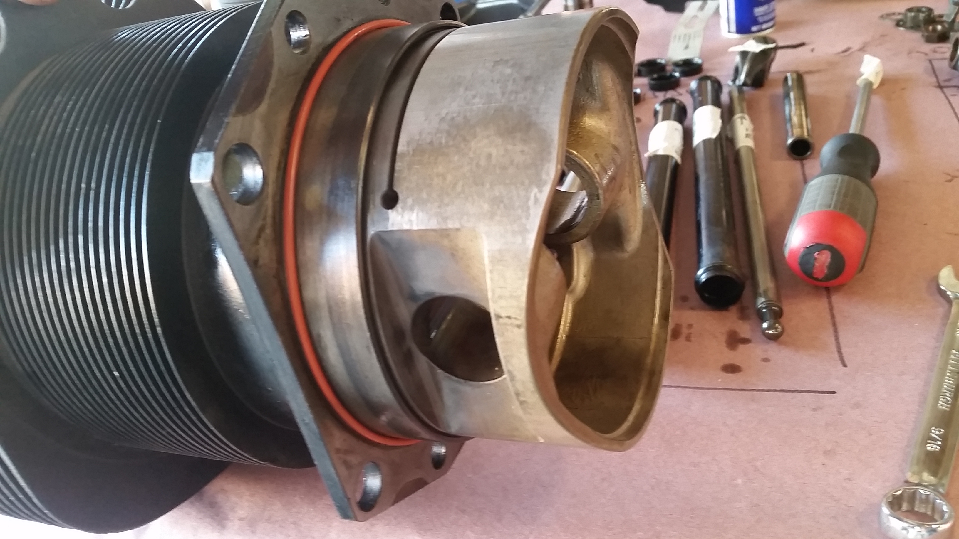 I spent five hours today replacing the O-290's pushrod seals. Since this is an O-290, it doesn't have the clips inside the valve cover that allows you to easily remove the pushrod tubes. As I learned a couple months ago, on the O-290 you have to loosen and pull each cylinder about a half inch or more away from the block to get the pushrod tubes out and change the seals. Bernie Fried suggests (and I'm glad he did) that if I'm going to go to the trouble of pulling the cylinders a little bit, that I might as well pull them away just far enough to remove the piston wrist pin and then change the O-ring at the bottom of each cylinder. It was actually fun to have some excellent help today (thanks RV-driver Steve!) and see how to do it. The best reward was finding out the N12055's engine is very clean inside. No corrosion, pitting, spalling, etc. on anything - cam shaft, wrist pins, cylinder walls, etc. Very lucky to see this engine in such good condition after sitting without running for 13 years. Sometimes you do get lucky ::) . After the engine was back together I went home and grabbed the wings and threw them into a U-haul and took them out to the airport. This was a very productive day.