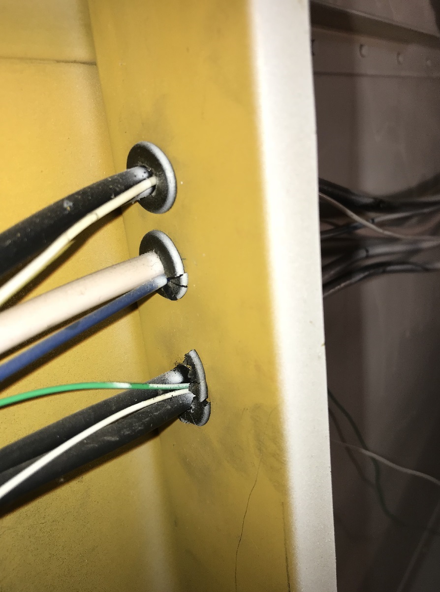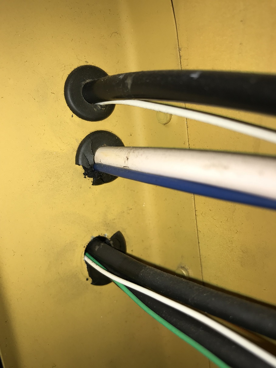 File comment: All wires in direct contact with metal in this bulkhead. One grommet completely failed.