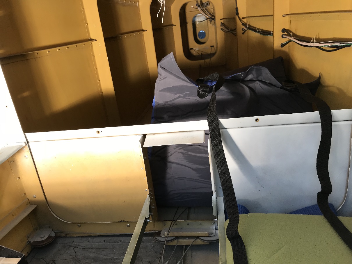 On a hot day, you'll need a fan to blow air back there. You'll also want to put something down to protect the fuselage floor metal. I used an inflatable sleeping bag cushion for camping. I found it easier to crawl out of the tail than into it. Crawling into it was kind of like a sick version of the old Twister game - but where a wrong hand placement can cut you. I have a lot of sharp metal here and there at the back of the baggage compartment and it really was a concern. Make sure to take your cell phone with you for pictures and emergency use. You should have a safety person when you're going in and out. I didn't think of that the first time :o ::) .