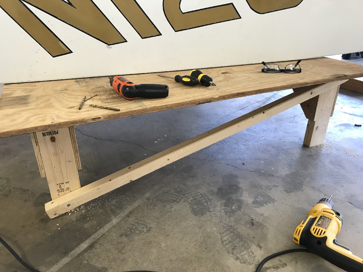 File comment: Simple table to raise and support the fuselage. The tail wheel is off the ground by about a half an inch. This is a right-side view and the tail wheel is to the left.