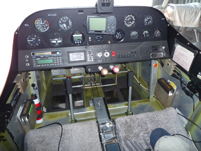 The panel is “old school” basic VFR w/ steam gauges, King KY-97a comm, Terra TRT250 Mode C transponder, ACK altitude encoder, NAT intercom, Garmin GPS100 (yes, it still works), Garmin GPS Map 196, and TruTrak DigiTrak single-axis autopilot (tied to the Garmin 196).