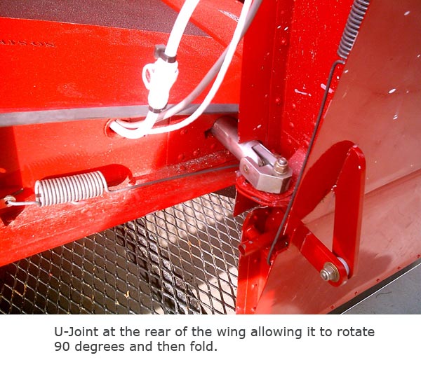 As far as the trailer my design came from Gus Gordon . With wings folded and on the trailer the whole rig is California street legal ! I am not an engineer but , the "universal joint" on the rear of the wing is more for transporting the wing than flying . I know the "pip pin" is not structural and can actually be missing . I'll let the engineers chime in regarding universal joint . If you do not want to fold the wing but , want the Lou Sunderlund wing use bolts to secure it in place . You may need NAS bolts or hand fit them to get a snug/no play in the wing at the wing attach point at the wing break .