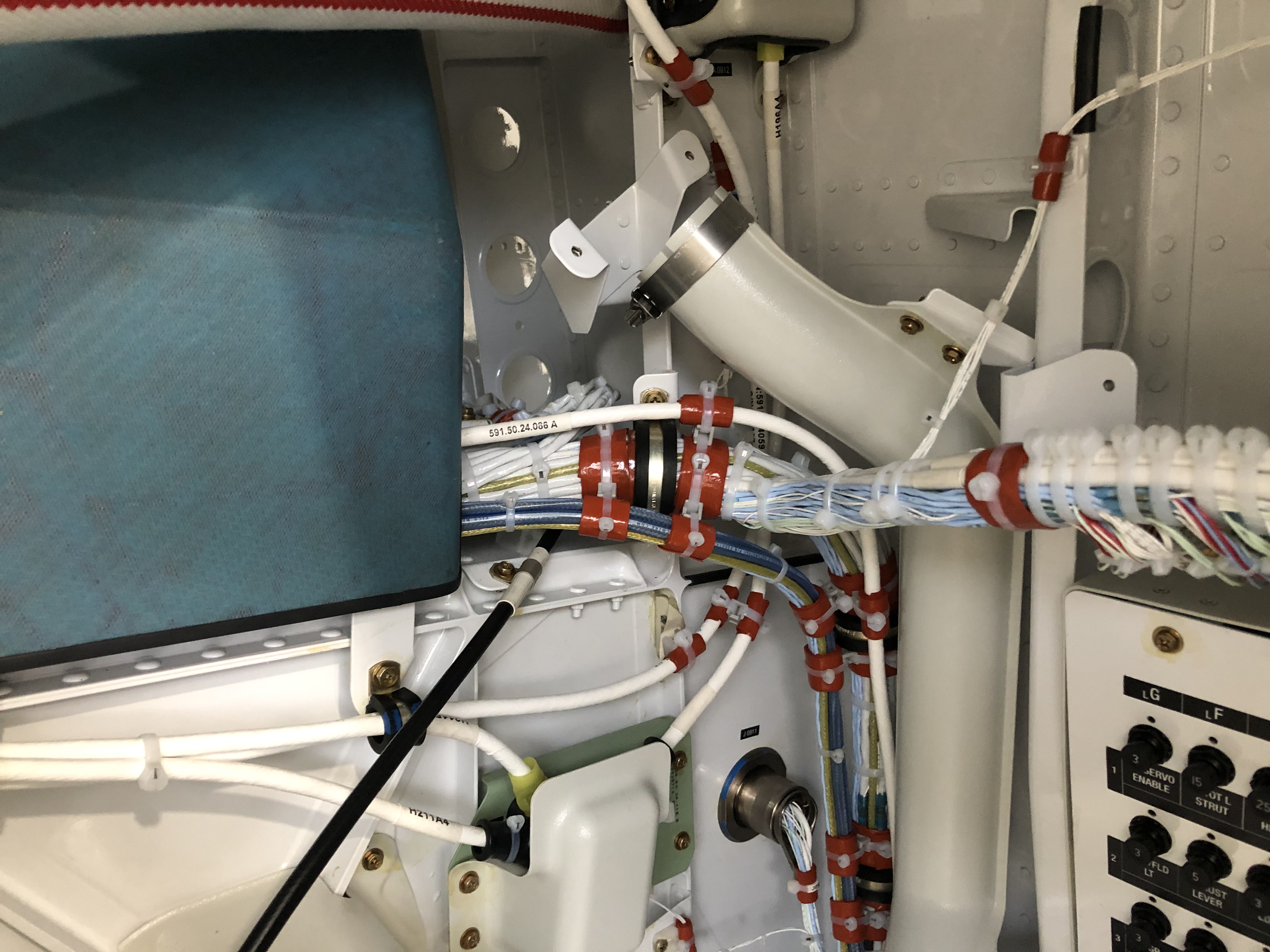 I have to tell on myself a little bit. I have been rewiring my flying T18 for a few days now. I started out at the tail of the airplane and have worked my way up to the panel. Everything aft of the panel got pretty little lacing cord. I love it, and it looks wonderful (of course there are only about 8 wires that run from my tail to the panel). But when I started in on that panel, with all those wires, and reaching down under the fuel tank with my arms stretched out in front of me and bent over while holding a bundle of wires. No way could I make those pretty knots with that lacing cord while doing all that! I am back with zip tie camp! And my back hurts!
